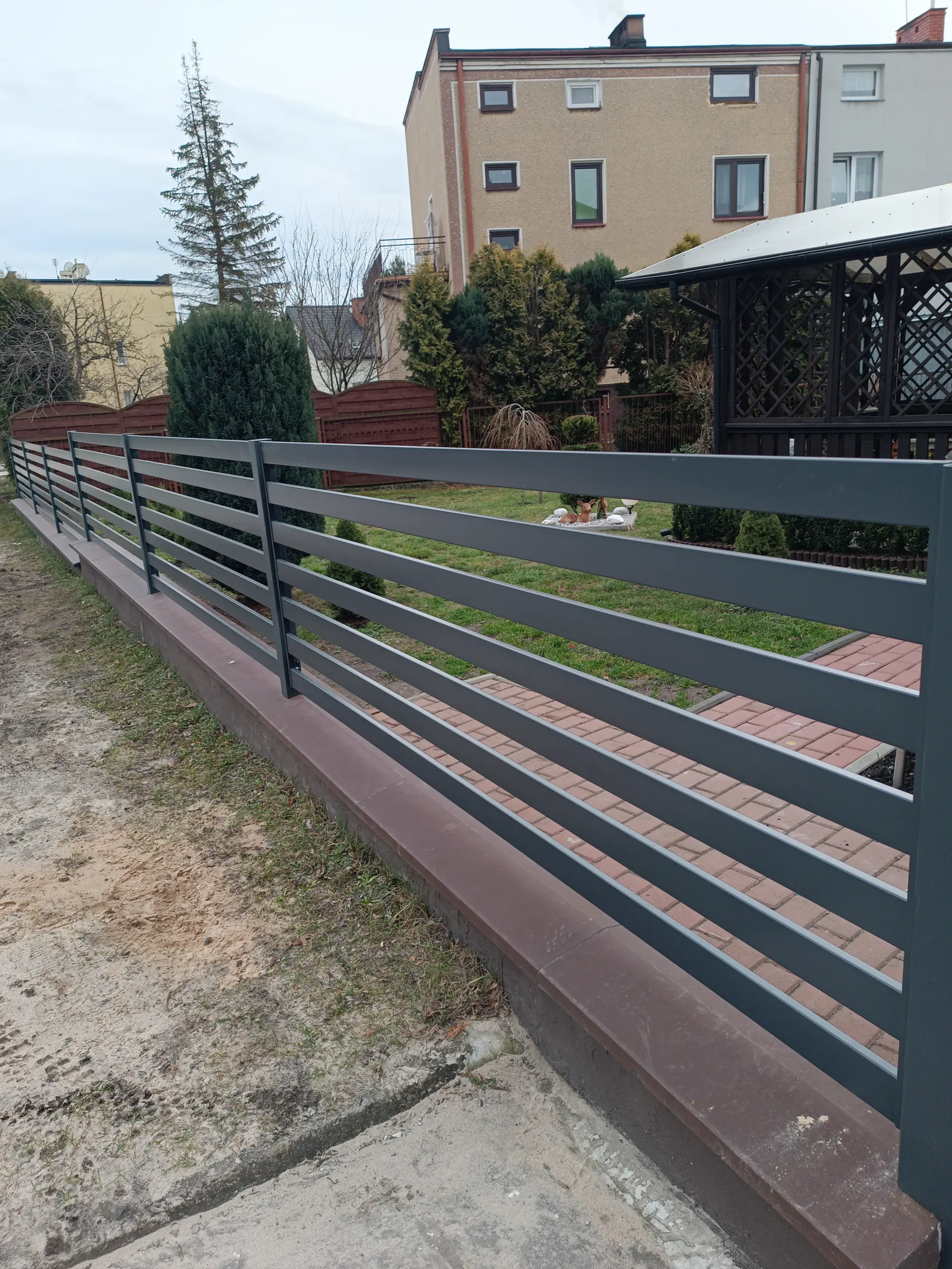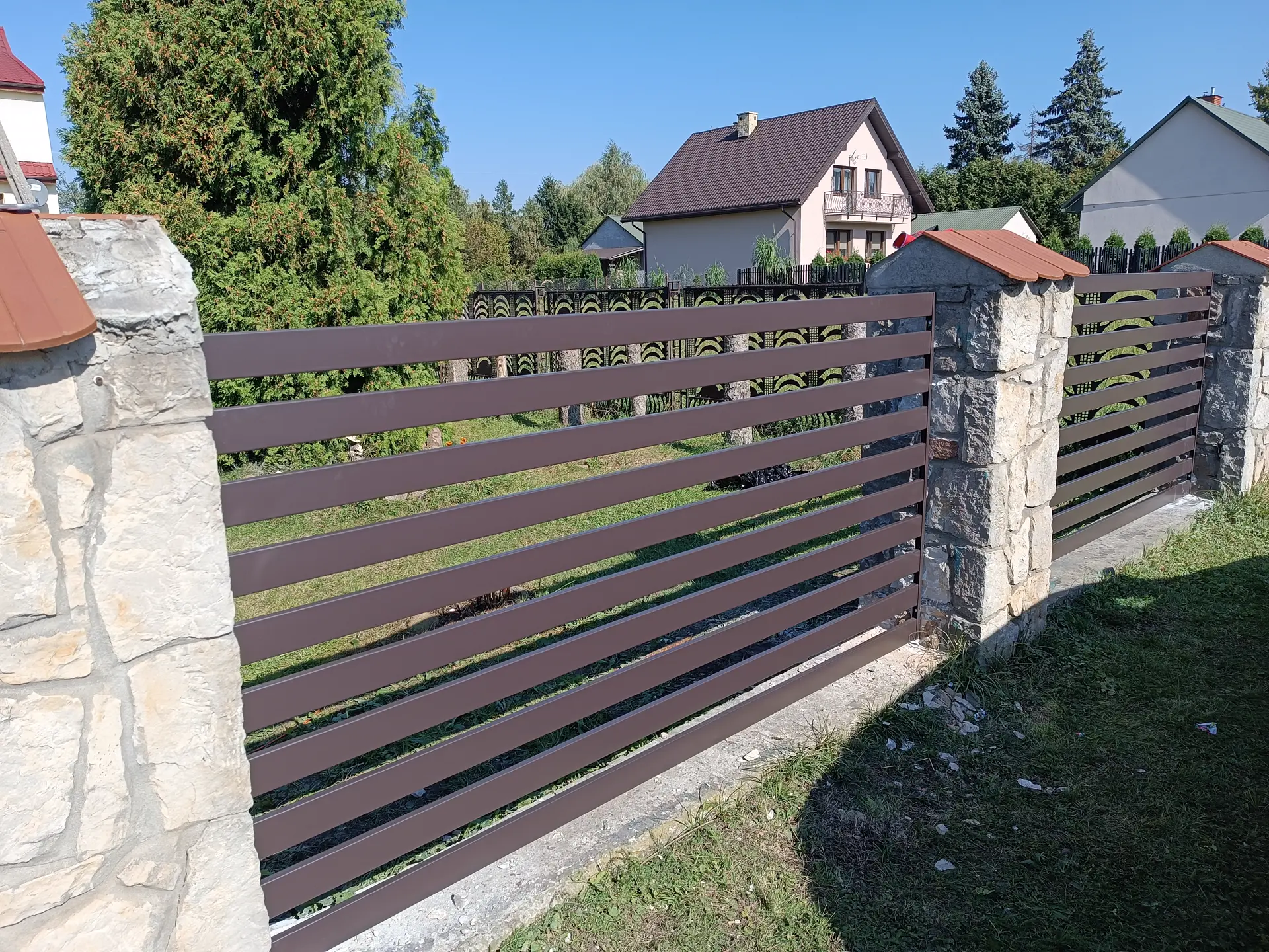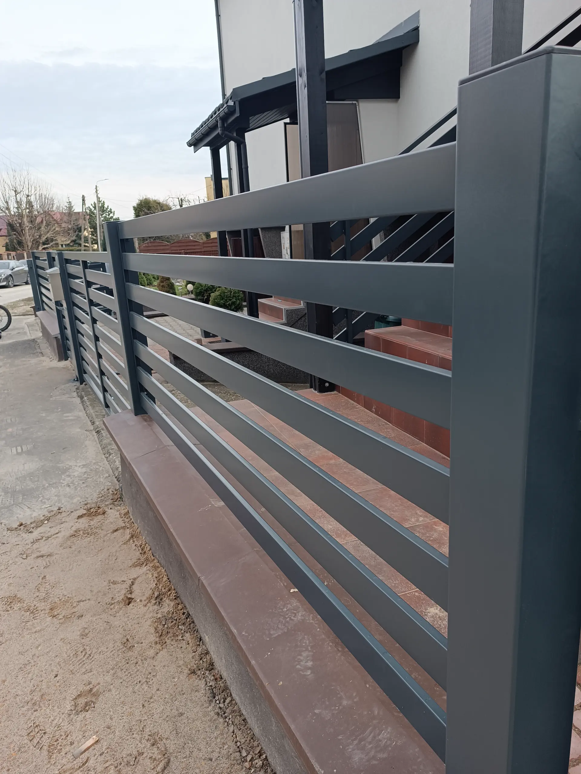 Designerskie ogrodzenia frontowe. Poziome profile zapewniające prywatność i prestiżowy wygląd.