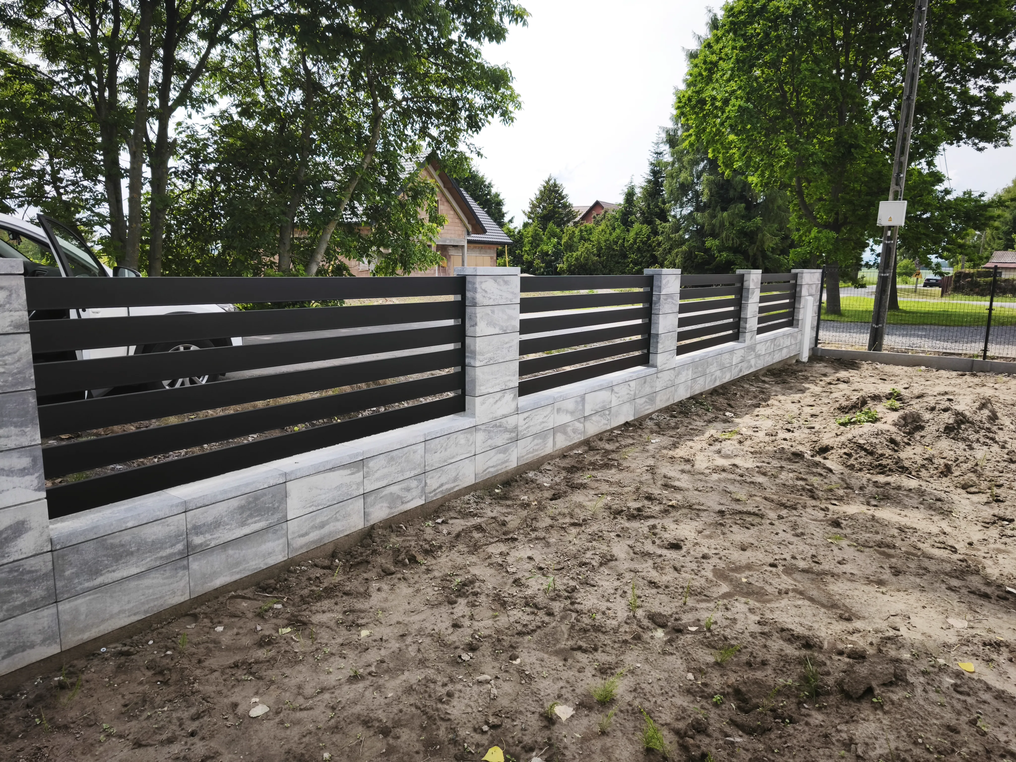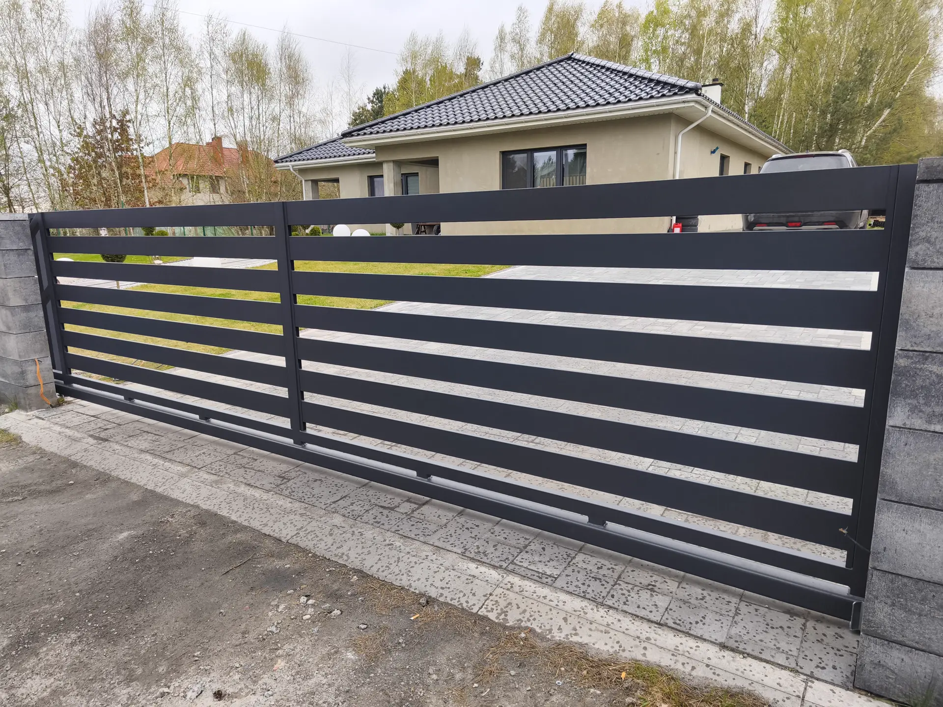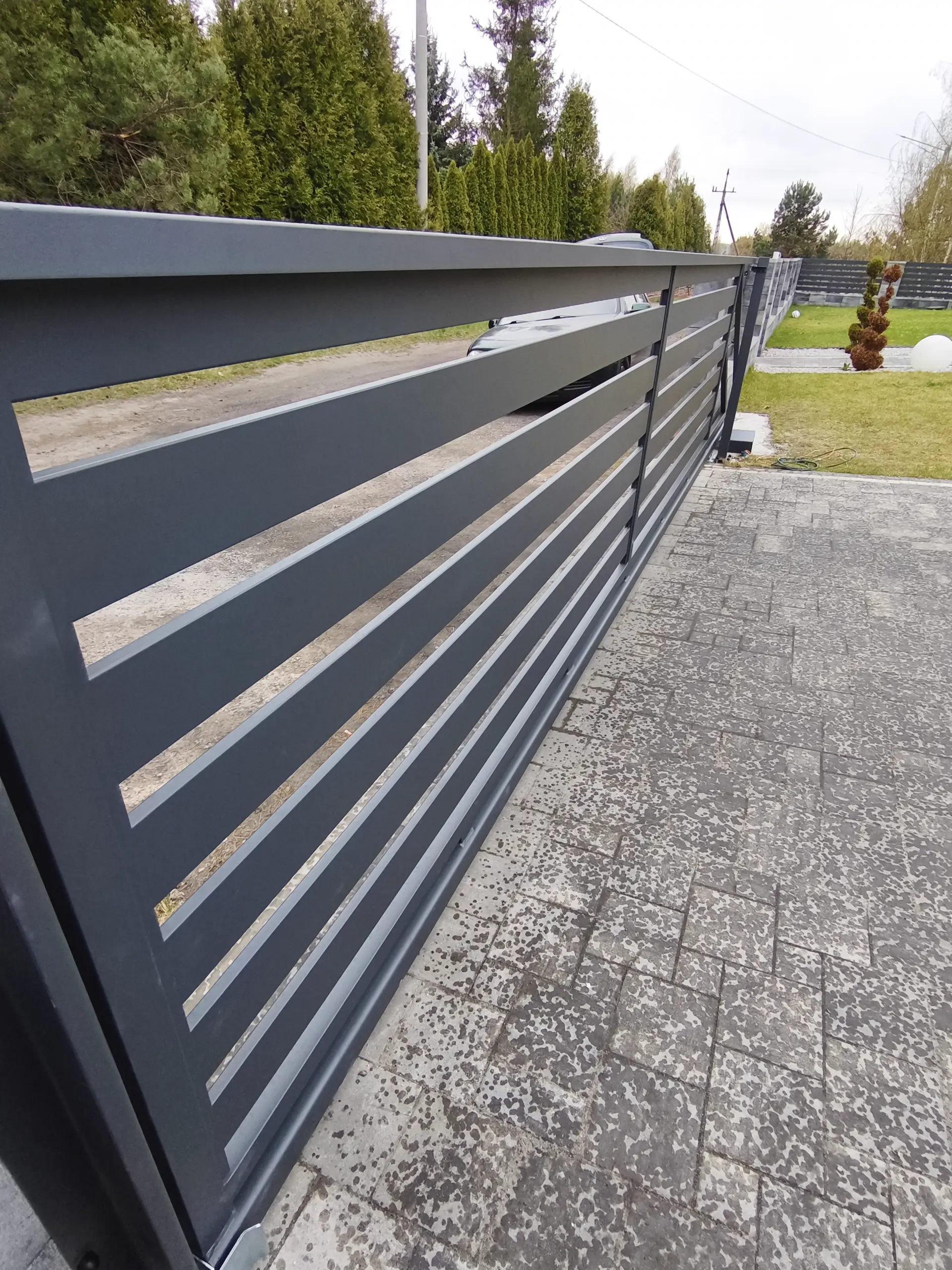Designerskie ogrodzenia frontowe. Poziome profile zapewniające prywatność i prestiżowy wygląd.